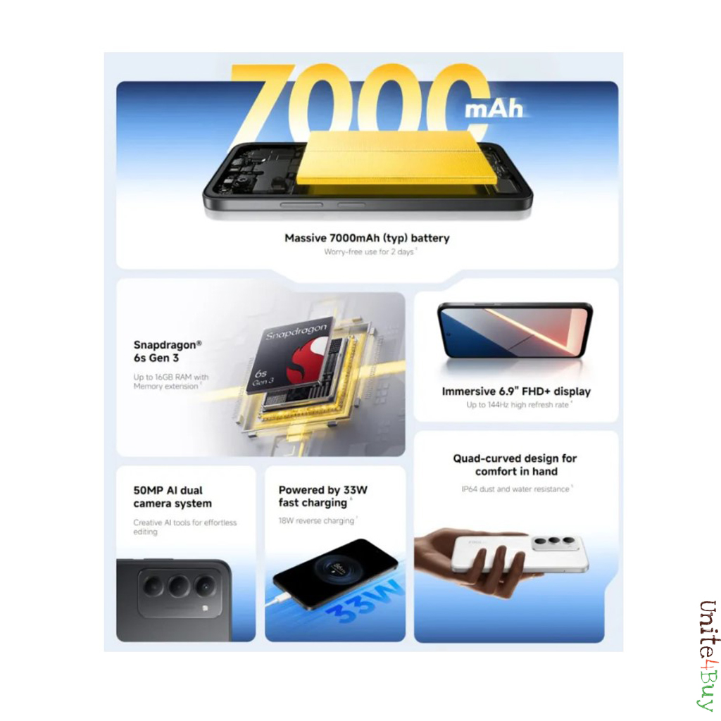 Технические характеристики не вызывают восторга, но он близки к оптимальным для недорогого аппарата. Комбинация процессора Qualcomm Snapdragon 6s Gen 3, 6гб/8гб ОЗУ и видеоускорителя Adreno 619 достигает 420-440 тысяч баллов в тесте AnTuTu и демонстрирует отзывчивую работу оболочки HyperOS на базе Android 16. Есть незначительный, но все же потенциал и для запуска ресурсоемких игр. Да, в Honkai: Star Rail или Genshin Impact придется выставлять минимальные настройки графики, однако геймплей будет стабильным и плавным. Емкость аккумулятора доведена до 7000мАч, благодаря чему автономность удовлетворит даже самых требовательных пользователей. Вспоминать о существовании розеток или павербанков нужно только раз в два, а то и три дня. Постоянной памяти 128/256гб, есть слот для карт MicroSD.